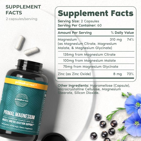 Primal Magnesium contains a unique blend of three forms of magnesium (glycinate, citrate, and malate) plus zinc to help maintain overall wellness.*